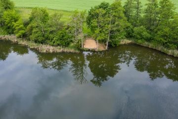 The depth of the lake is from 1.7 meters to 4 meters at the dam. Around the lake you will find beautiful nature and shores wih water plants that create a wonderful atmosphere for eyes and soul. Only 9 fishing spots have been built all around the lake, which are far enough apart so all fishermen have enough space and can enjoy their time at the lake in peace.