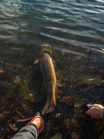 Pokud se rozhodnete rybu vyndat z vody na břeh, ponechejte ji co nejdelší dobu to bude možné v podběráku ve vodě, ať je na břehu po co nejkratší dobu.